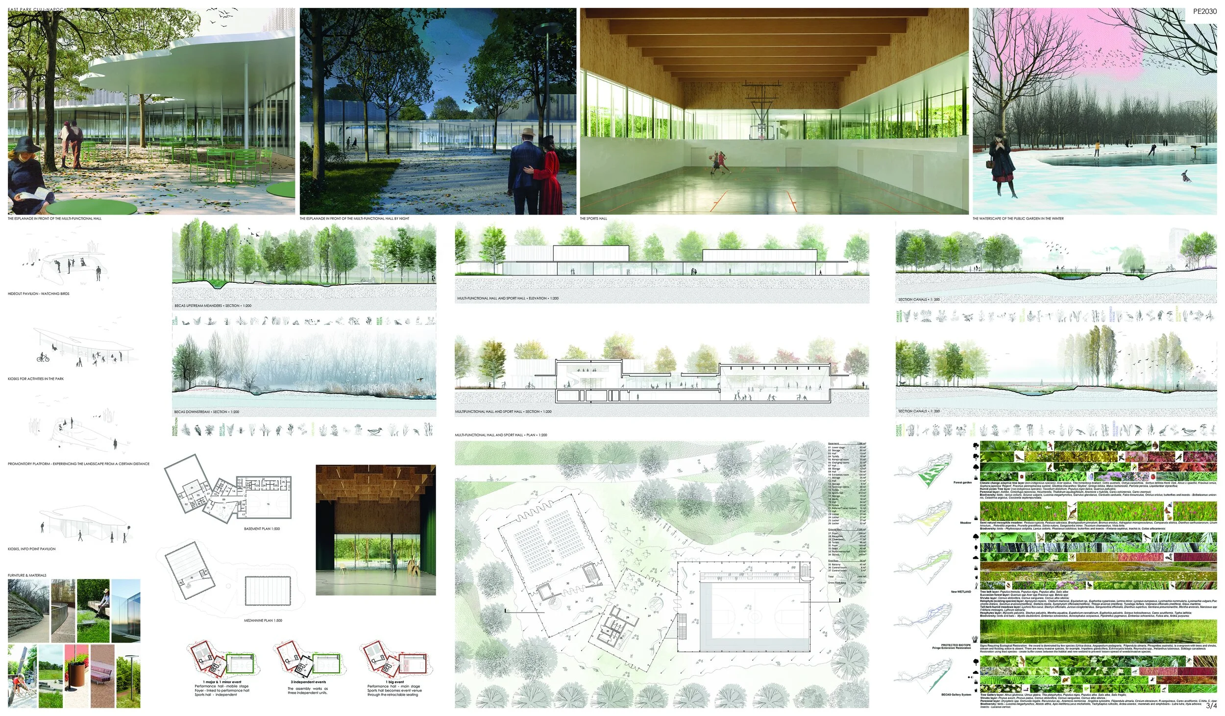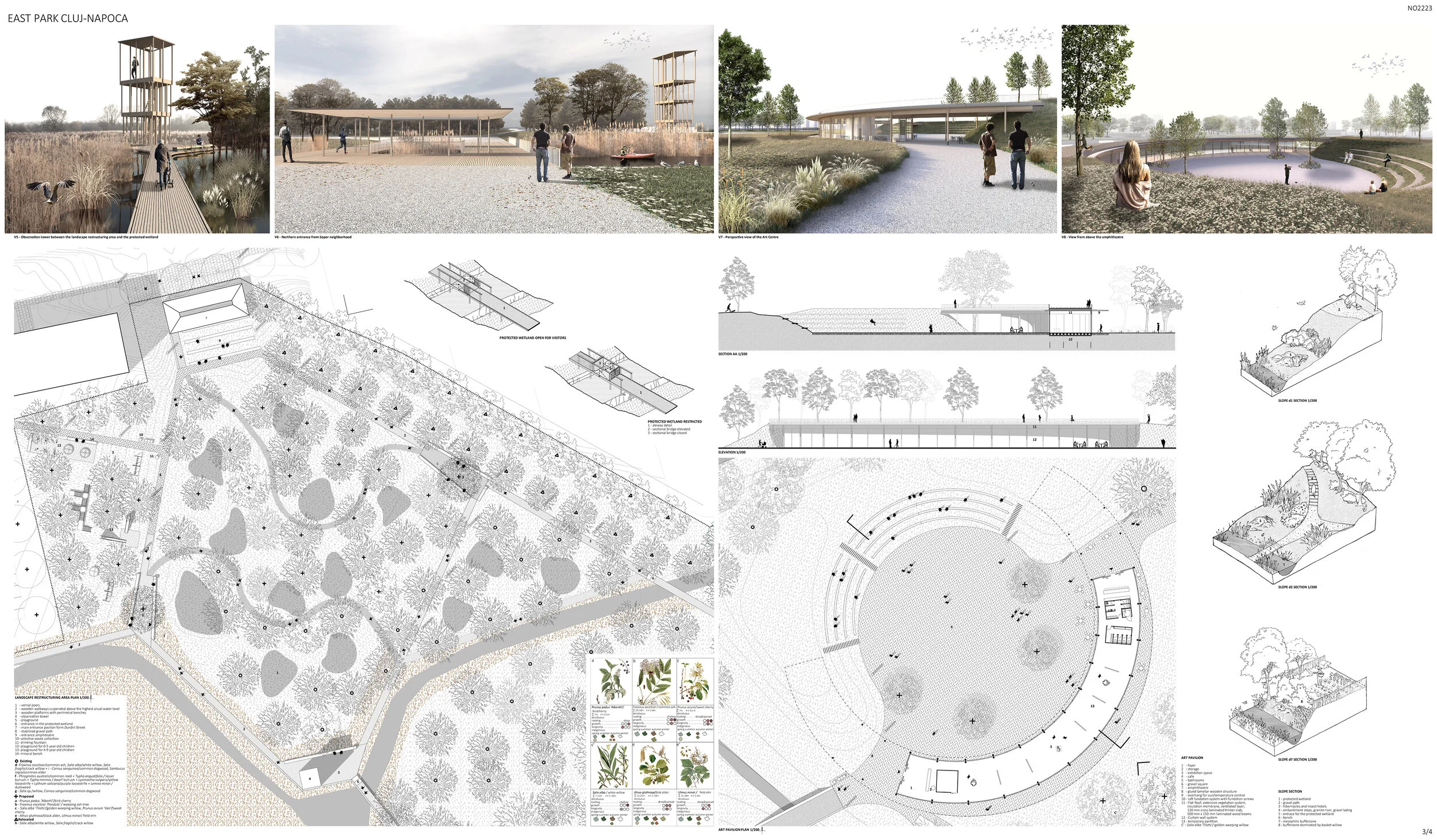 ”SHIFTING NATURES propune Parc Est ca un spațiu continuu, care realizează o tranziție treptată de la o zonă umedă protejată la un parc liniștit, cu spații deschise generoase. Proiectul combină într-o manieră inteligentă fluiditatea zonei umede cu dispunerea ortogonală a plantației pepinierei pentru a realiza un desen coerent. Este un proiect construit cu mijloace minime — topografie, apă, vegetație și alei — iar rezultatul aduce o bogăție impresionantă și o diversitate de atmosfere, deschise pentru a evolua în timp și pentru a absorbi nevoi viitoare.” – aprecierea Juriului